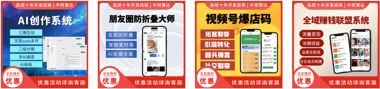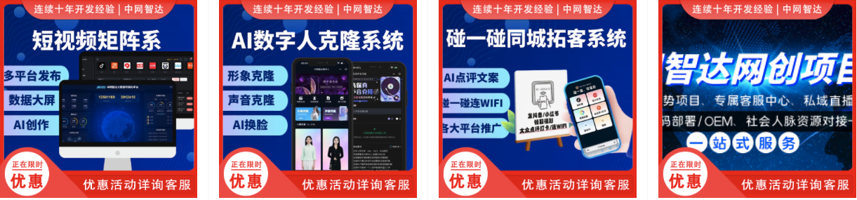 紧跟技术前沿与市场趋势,我们研发了一系列具有前瞻性的成品系统,如无人直播系统、AI数字人克隆技术、多渠道快速接入系统(碰一碰)、营销矩阵管理系统以及地图精准标注系统等,这些创新产品为创业者提供了强大的技术支持与市场赋能,助力他们在激烈的市场竞争中脱颖而出。